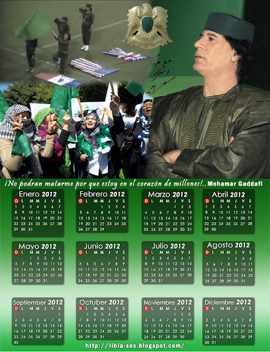 Nota añadida por Enoc2.Les presentamos dos calendarios del 2012 en honor al lider de la Jamahiriya Socialista, Mohamar Gaddafi.Fin de la Nota